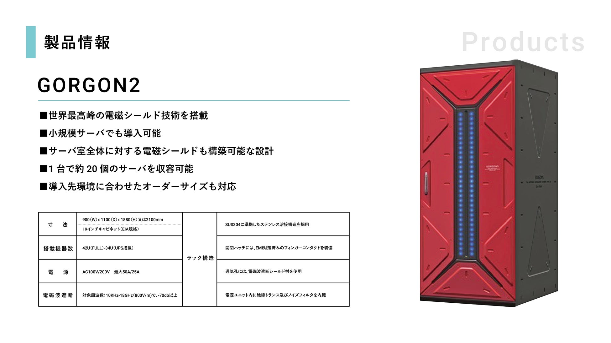株式会社電磁シールド研究所は10年以上に渡り電磁波に対するシールド領域の研究、検証を行い、防衛省や自衛隊をはじめとする官公庁への導入や指導を行ってきました。電磁波による誤動作や情報漏洩などのセキュリティ対策は、官公庁などだけでなく、クラウドやIoTなど多くの場所で必要とされる時代になり、民間でも電磁波に対するシールド技術の導入が求められています。当社は、電磁波シールド技術を搭載したサーバラック「GORGON2」を軸に販売戦略を行い、電磁波領域に関するBCP対策専門企業を目指します。株式会社電磁シールド研究所は事業拡大を目的とした販売専門会社であるX Shield株式会社(本社:東京都新宿区、代表取締役社長:小高 伸正 )を2022年12月12日付けで設立いたしました。また、それに伴い、新たにショールームを設置することを発表いたします。