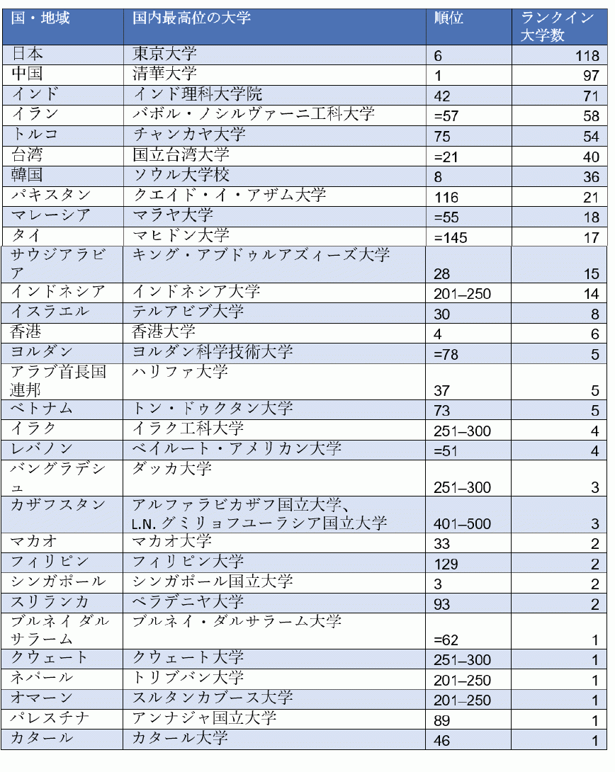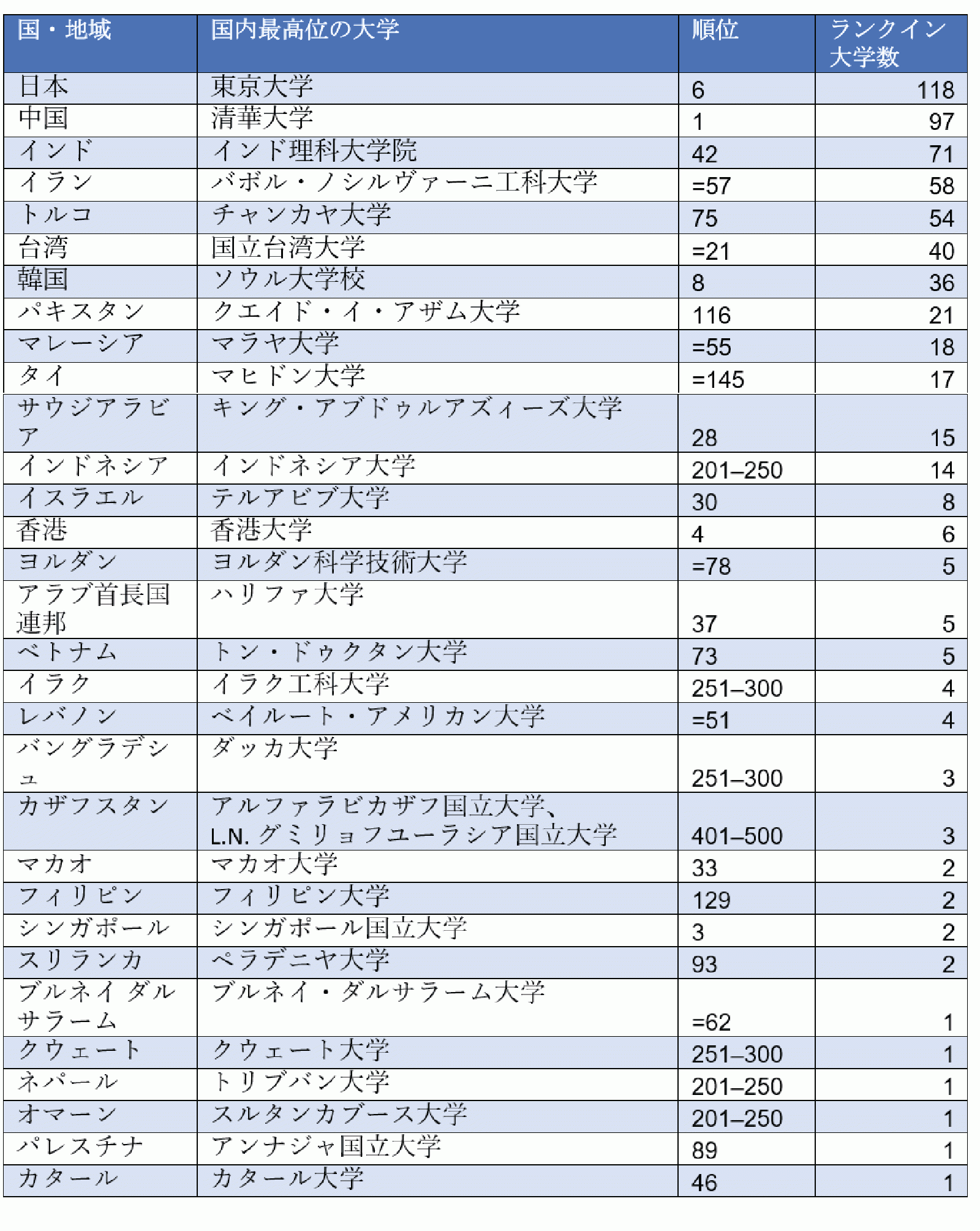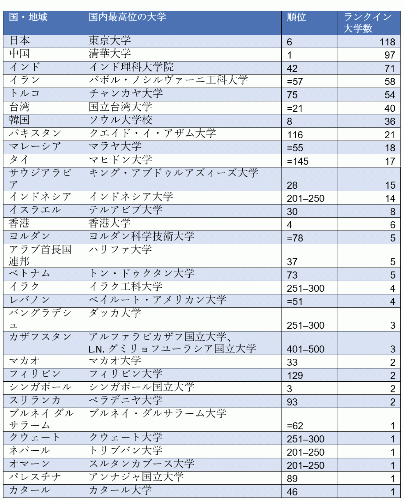 「THE(Times Higher Education)」のアジア大学ランキングで日本のランクイン数が最多に