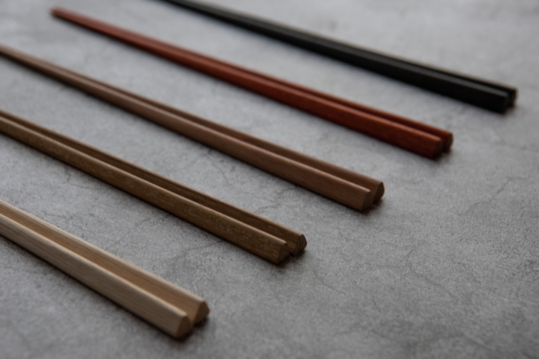 ギフトとして喜ばれるもう1つの理由は、お箸に適した5つの木材の中から、自分好みの木材を選べること。