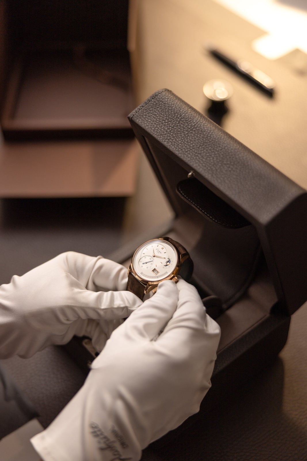 一流の時計は単なる部品の集合体にとどまりません。完璧に仕上げられた文字盤の下では複雑な機械の心臓が鼓動し、それらすべてが組み合わさって、グラスヒュッテで、そして世界中で感動を呼び起こします。この魅力は、マニュファクチュールの新しい映像が示すように、時計が完成するずっと前にその起源を持っています。最初のアイデアから最後の仕上げに至るまで、時計製造は情熱を込めた手作業と数々の心遣いの賜物であり、今回の作品は時計製造を支えるそうした人々に捧げられています。