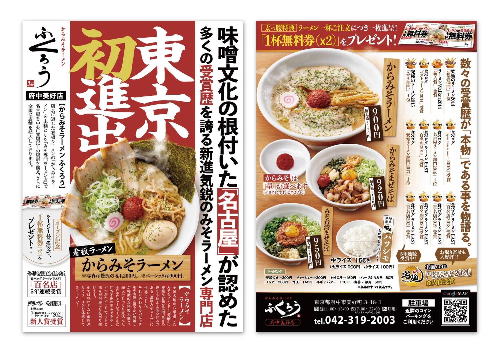 …など数々の賞を受賞したラーメン店が7月29日(金)に満を持して東京都初上陸!府中市美好町に『からみそラーメンふくろう府中美好店』がオープン致します!