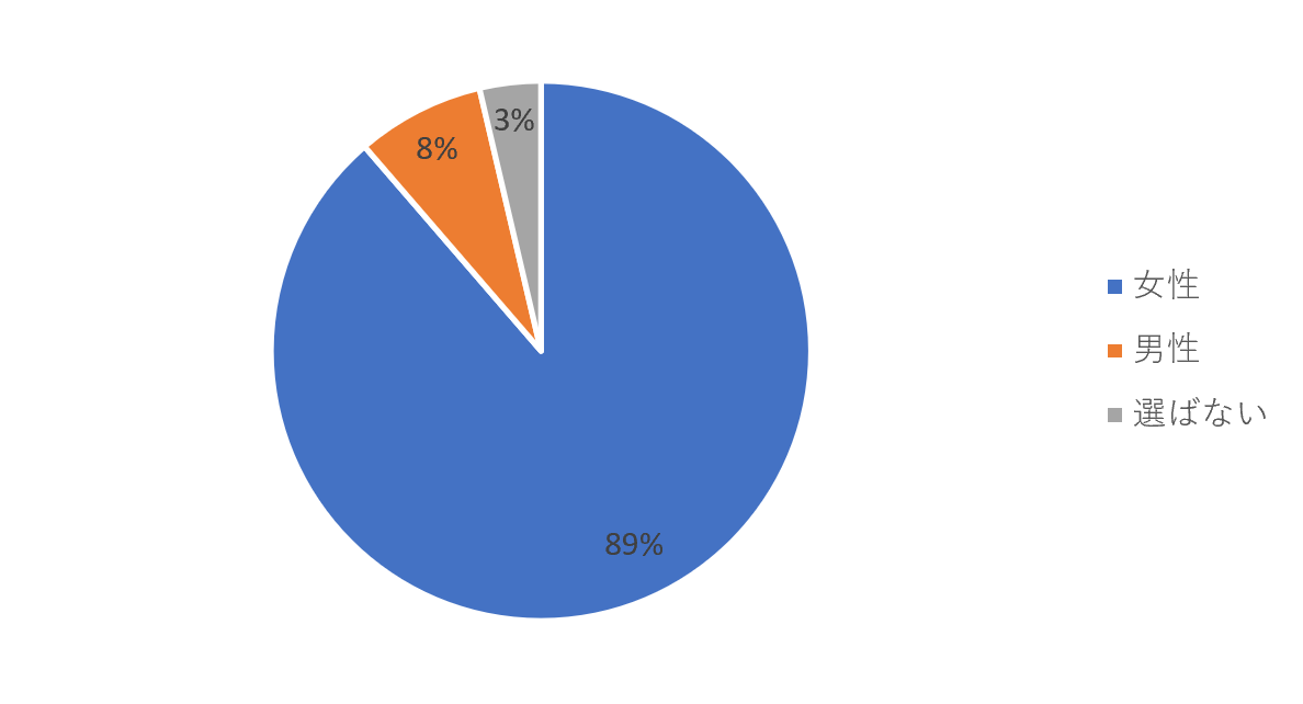 今回のアンケート調査では、20~30代が全回答者の64パーセントを占めました。また性別については女性が89パーセントとなっています。