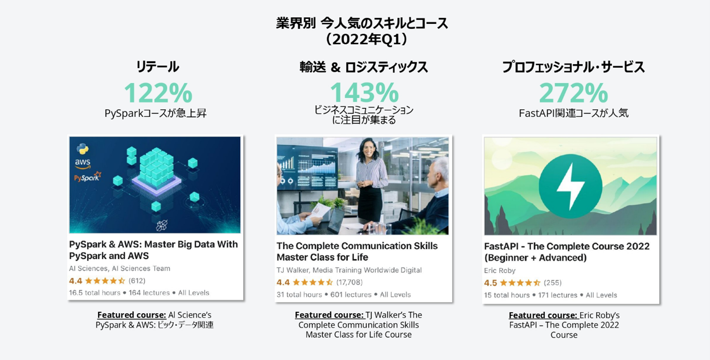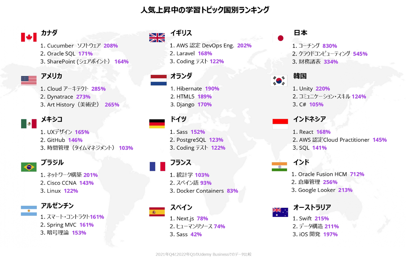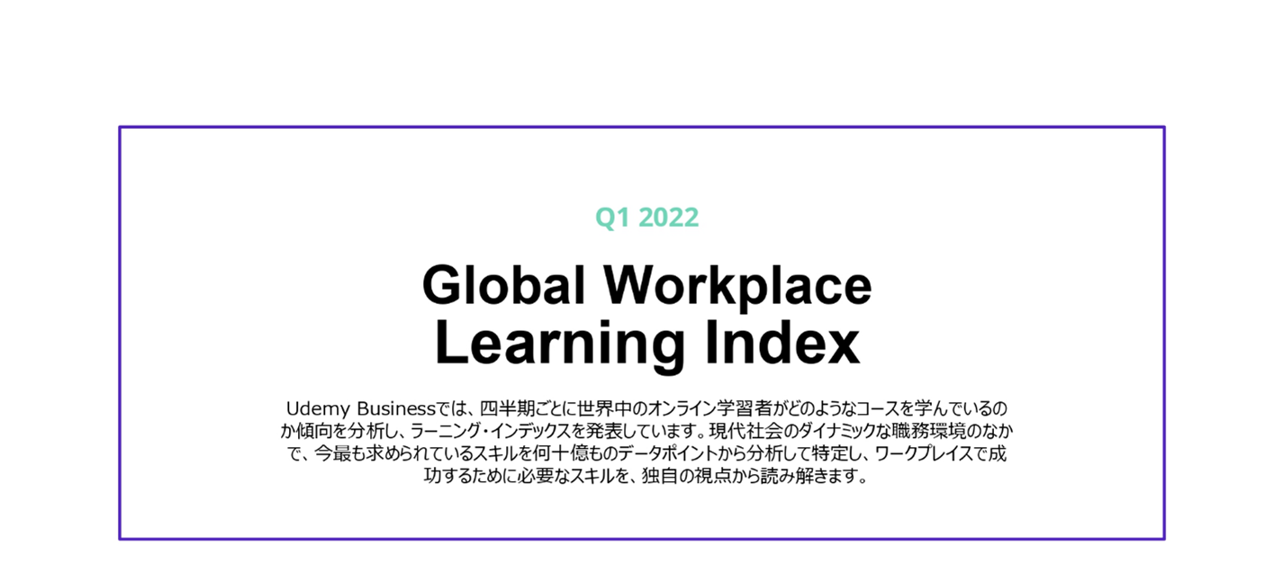 オンライン学習・教育のリーディングカンパニーであるUdemy(ナスダック:UDMY)は本日、「2022年第1四半期 ワークプレイス・ラーニングインデックス」を発表し、テクノロジースキルとパワースキルで世界中のオンライン学習者が最も学んでいる講座を明らかにしました。