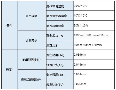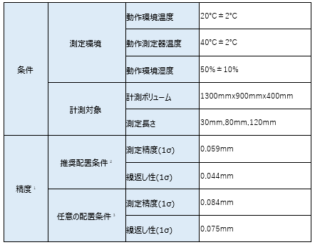 ¹ ISO10360を参考に光学式3次元計測に適した検証方法の元、行った結果