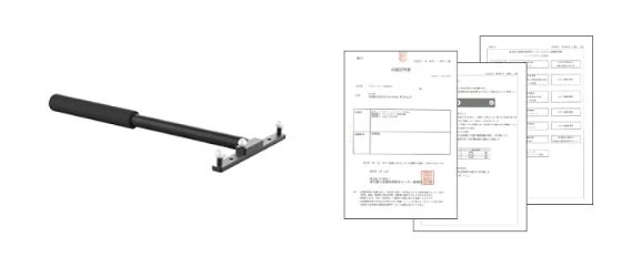 ▲ キャリブレーションワンド125mmとJCSS標章付き校正証明書