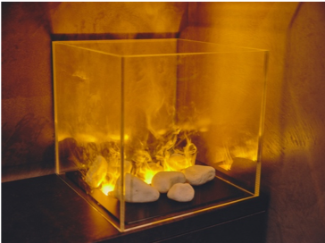 本物の炎のようにゆらぐ炎は水蒸気で表現されているため、触れても火傷の心配がなく安全です。