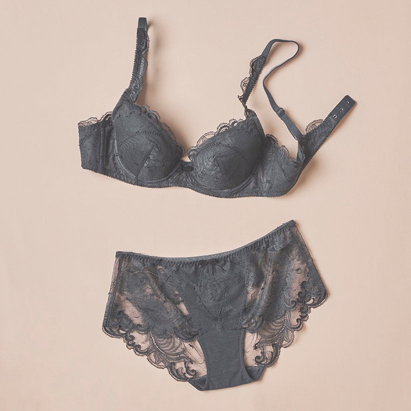 肌の上でレースの柄が最も引き立つチャコール、