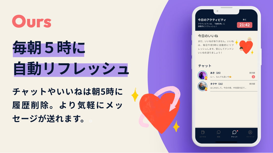 4.翌朝5時にマッチングしたお相手やチャットの内容はすべて削除