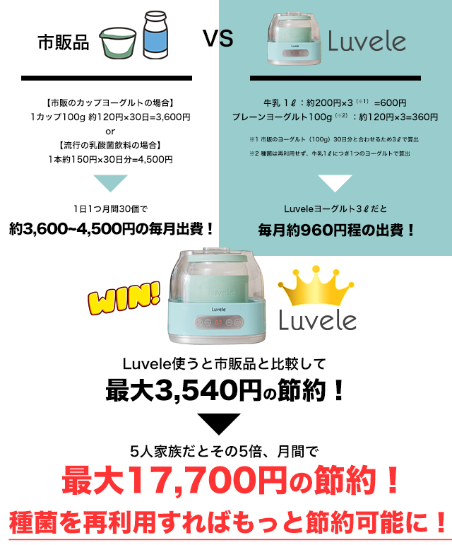 家庭で作る「YOGU YOGU PROBIOTICS」は輸送がないので、100%生乳でしっかりとした自然の食感、おいしい新鮮なヨーグルトが食べられます。LuveleとYOGU YOGU PROBIOTICSで美味しいヨーグルト生活を楽しみましょう。