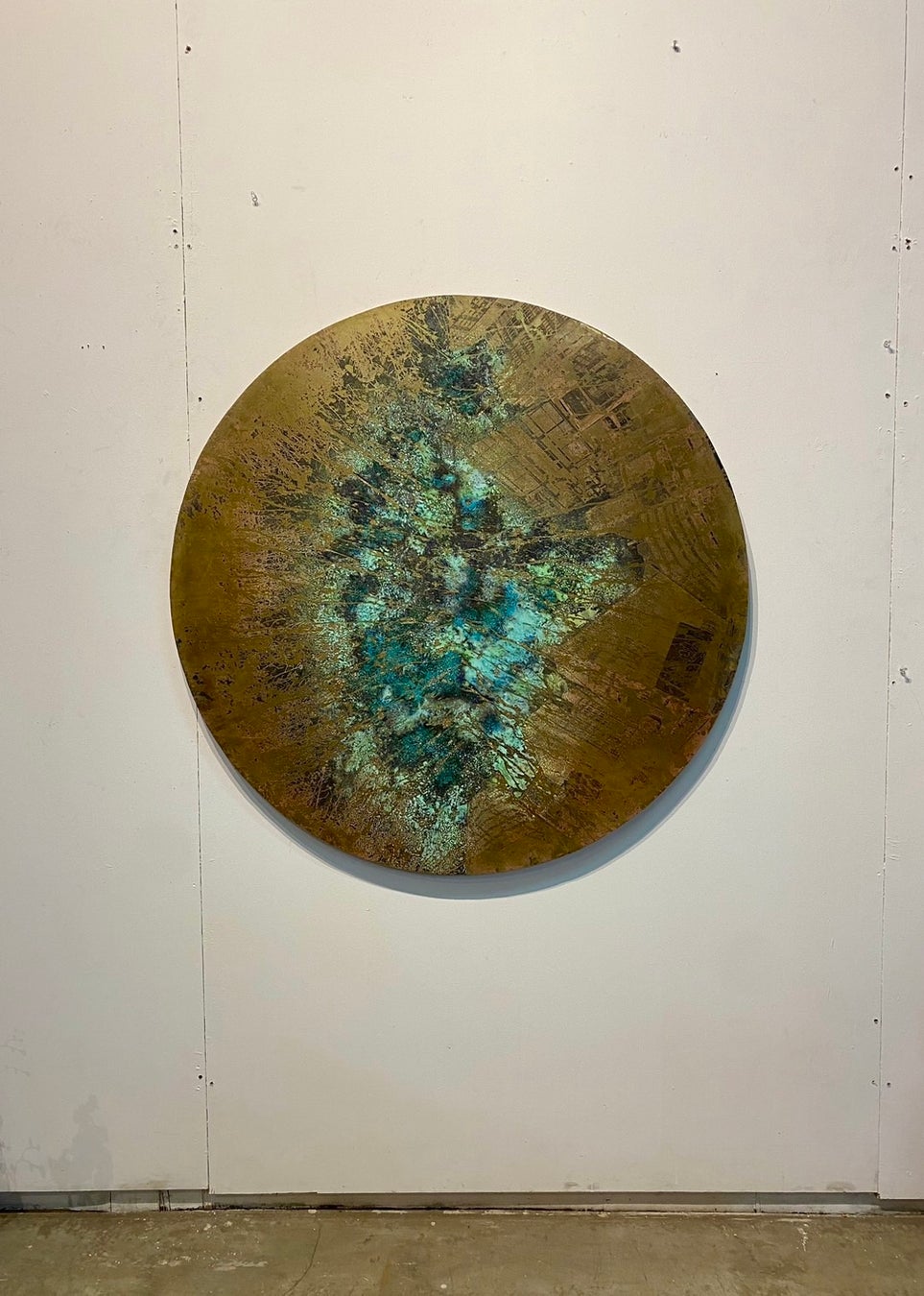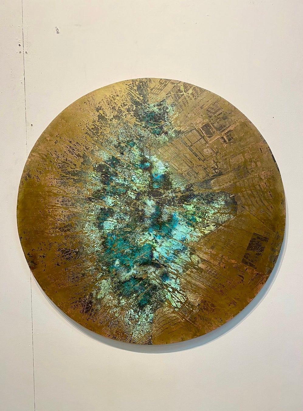 真鍮板に時の記憶を刻み込み、その日の太陽の光を当て緑青を出します。