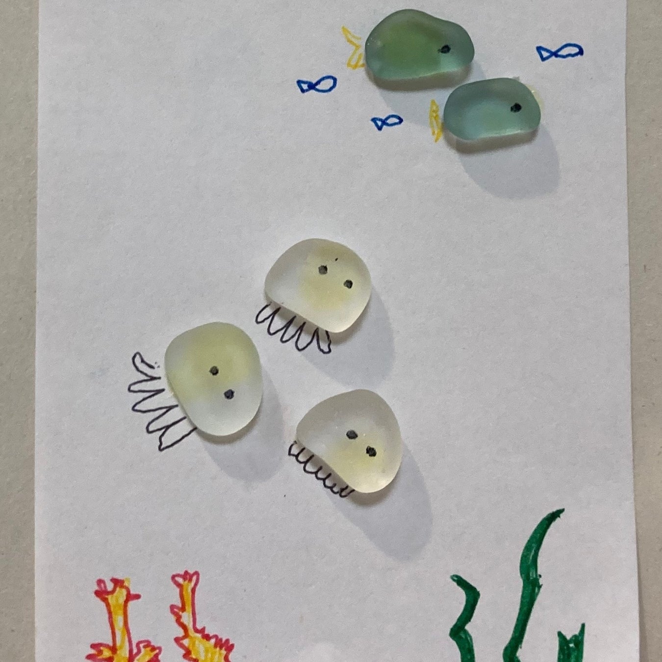 今回は、シーグラスを使い立体作品を作るワークショップです。シーグラスとは、海に捨てられたガラス瓶が長い間波にもまれてできたもので、「海の宝石」とも呼ばれています。