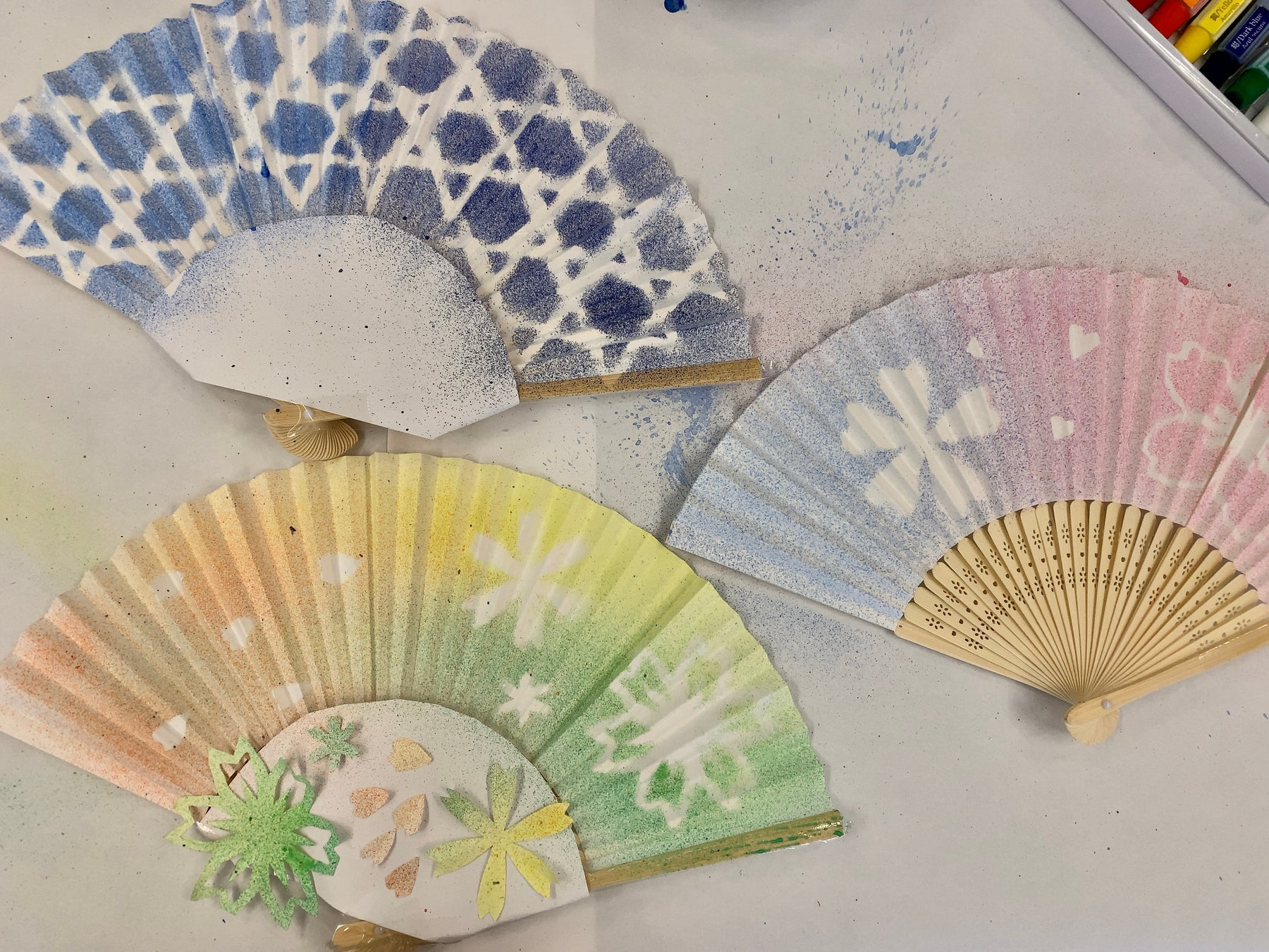 7月開催ではオリジナルの扇子を作りました。ご覧の通り、カラフルでかわいらしい作品ができ、参加してくださったお客様からは「持ち歩くのが楽しみ」「世界に一つのオリジナルな作品ができて嬉しい」などの感想をいただいています。