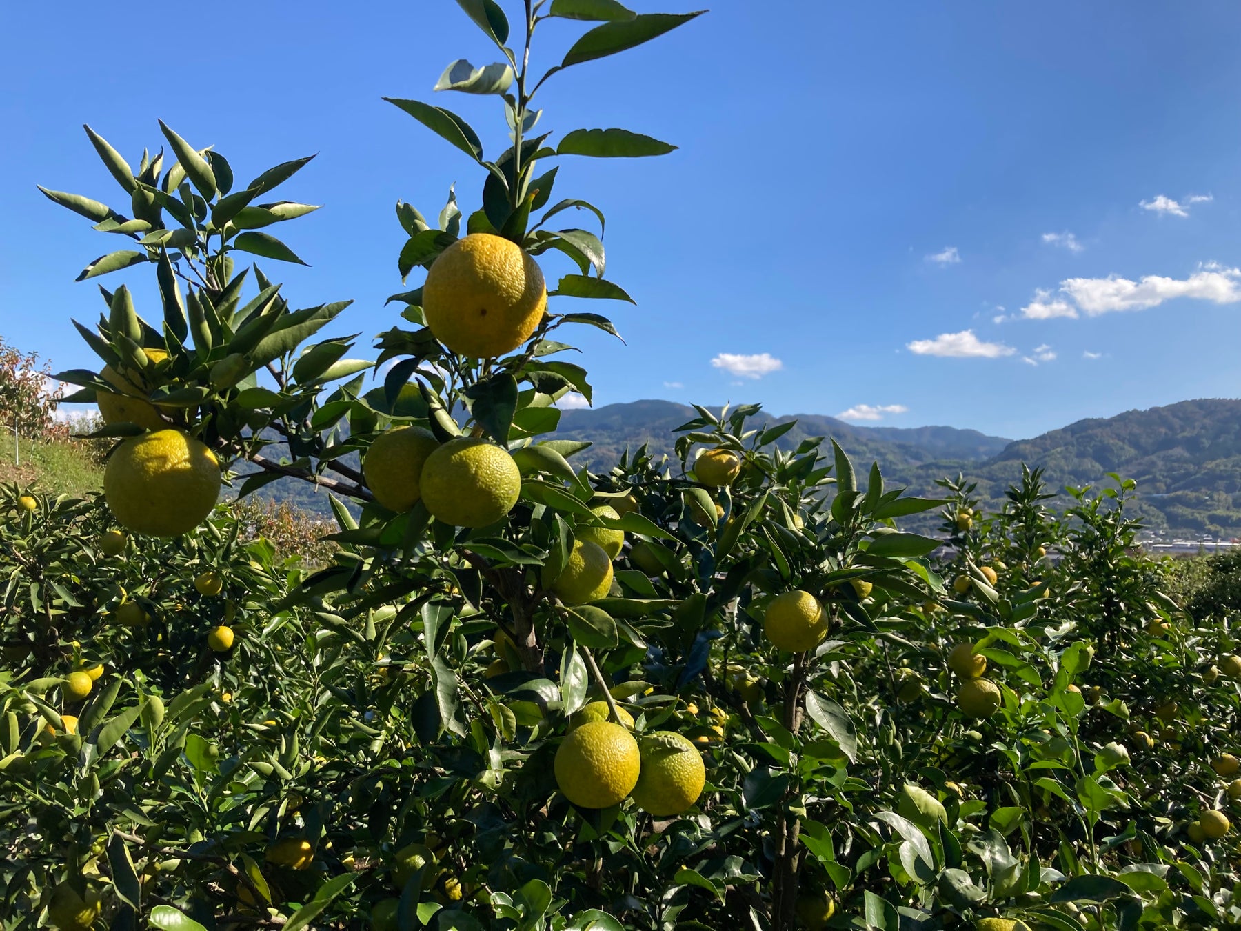 「邪(じゃ)を祓(はら)う」ほどの香りと酸味があることから、その名が付けられた「じゃばら」は和歌山県北山村に自生していた珍しい柑橘です。じゃばらと言えば、北山村のイメージが強いかもしれませんが、フルーツ王国とも呼ばれるかつらぎ町の紀州かつらぎ山「しんおか農園」でも栽培されています。今回はこの冬収穫されたじゃばらの初しぼり果汁を使用します。