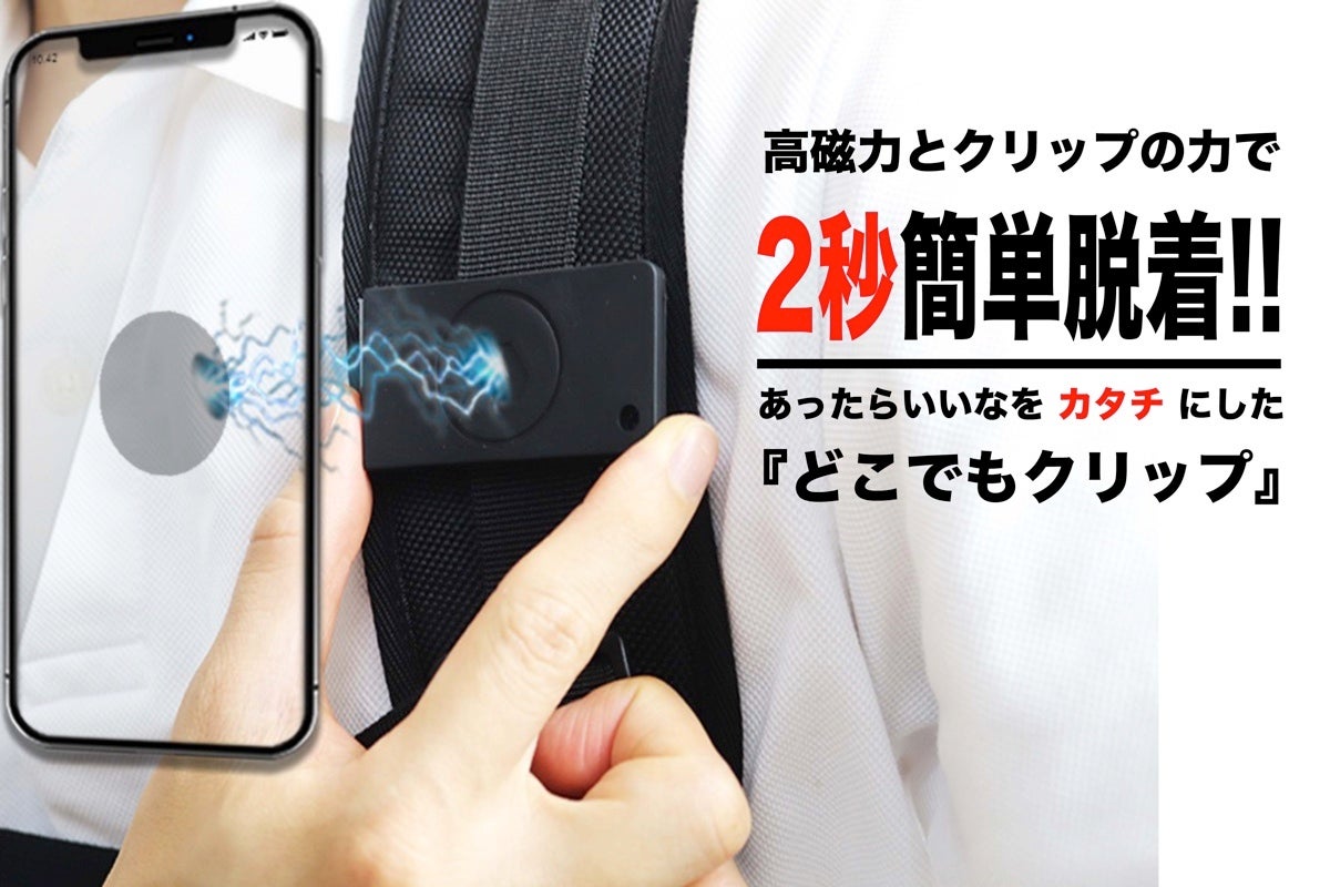 スマホなどを簡単に脱着できる「どこでもクリップ」をmachi-yaで9月30日(金)まで先行予約販売!開始4日で目標400%超え達成!!マグネットの飛躍的進歩が日常を変える逸品!