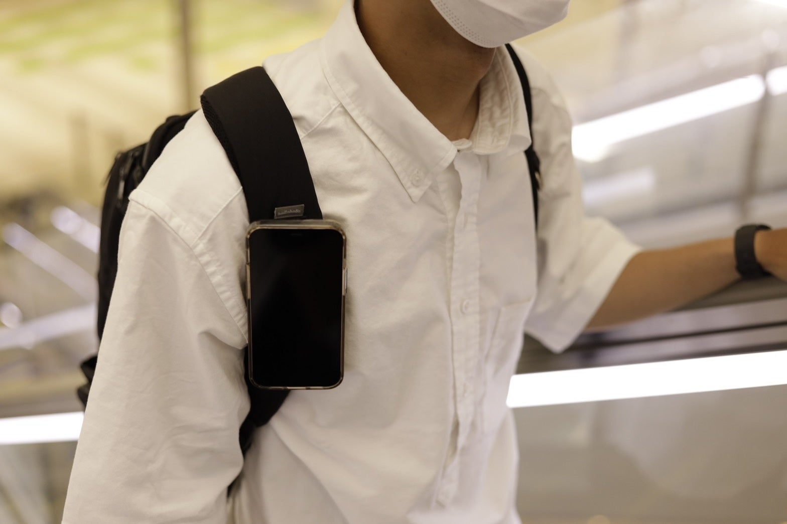 通勤通学時にすぐにスマホをどこでもクリップから外して改札のICタッチをスムーズに!