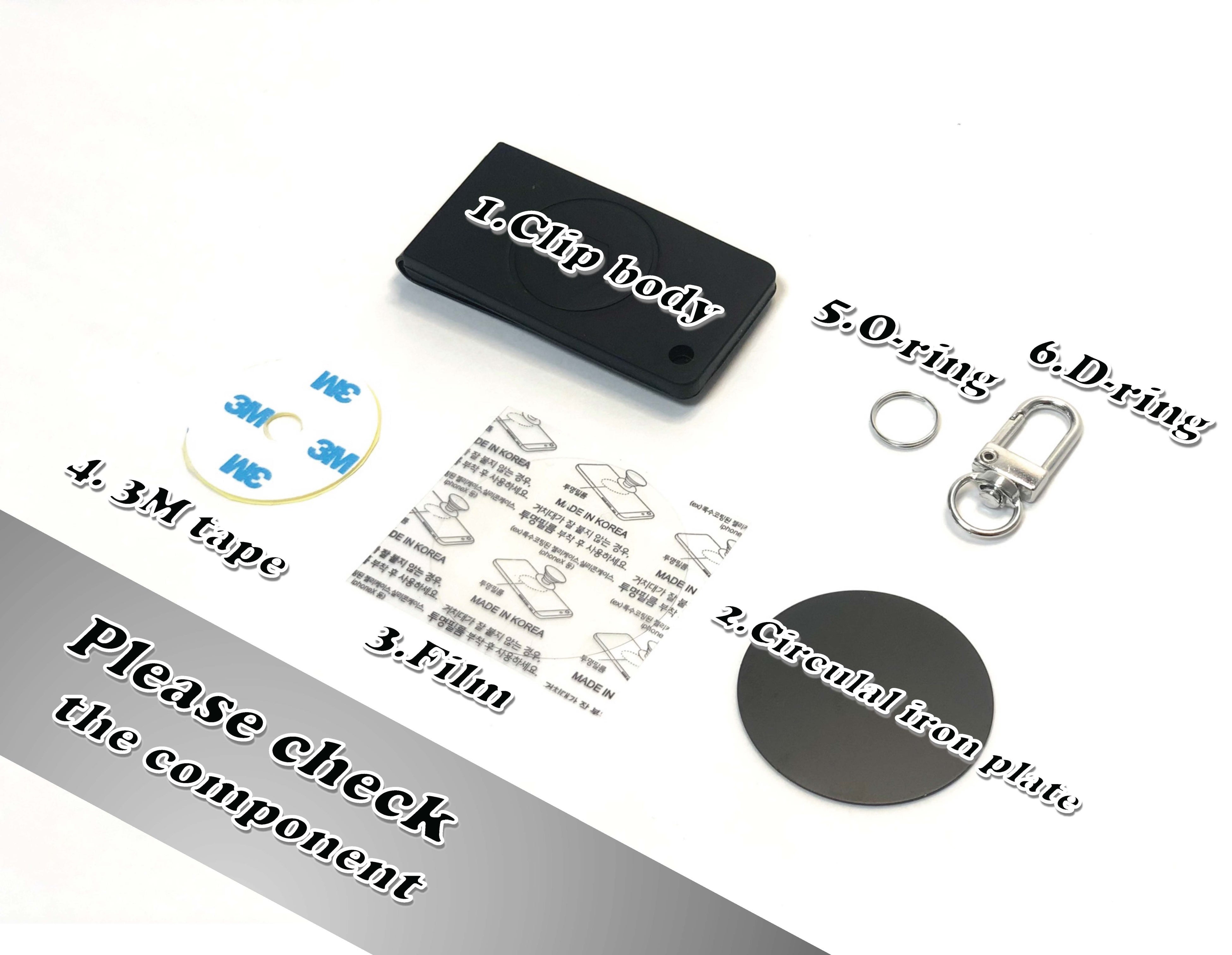 内容 :高磁力磁石内臓クリップ1個、磁石用円形スチールプレート1枚、透明接着シート1枚、