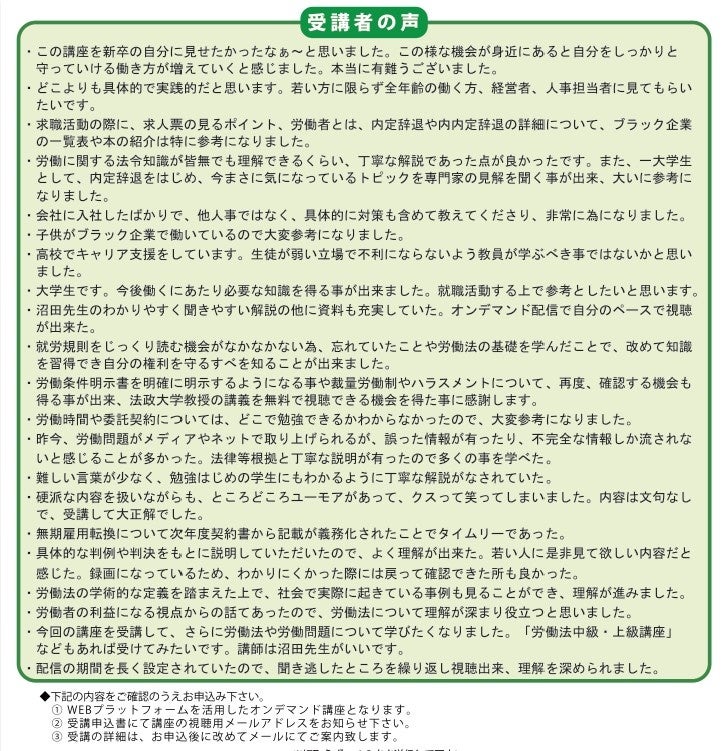 ※ 同時開催 : 若者のための労働法入門講座(受講無料)!是非ご受講下さい。