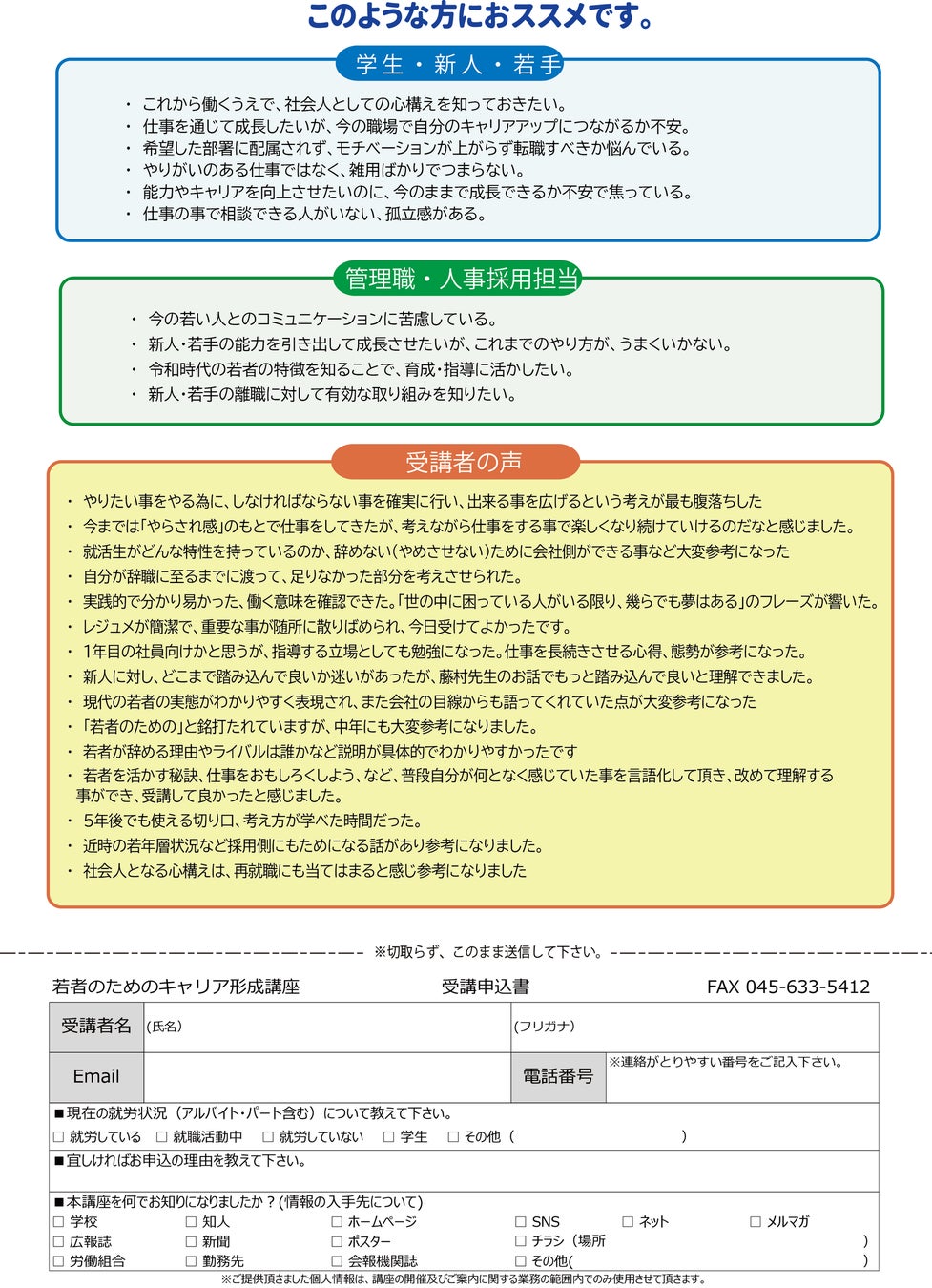将来のキャリアに役立てたい方はもちろん、経営陣や人事採用担当者、新人育成を担う新任の管理職の方にも、最新の若者の状況や離職の問題、人材育成などにも理解を深めて頂ける変良い内容となっております。