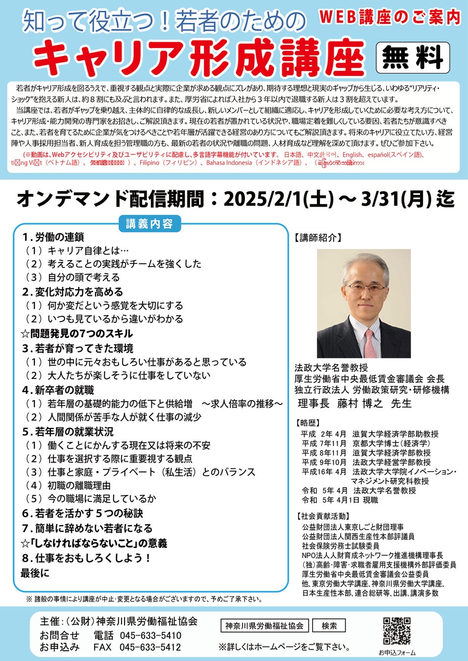 知って役立つ!若者のためのキャリア形成講座 開催!(2/1~3/31 無料配信)