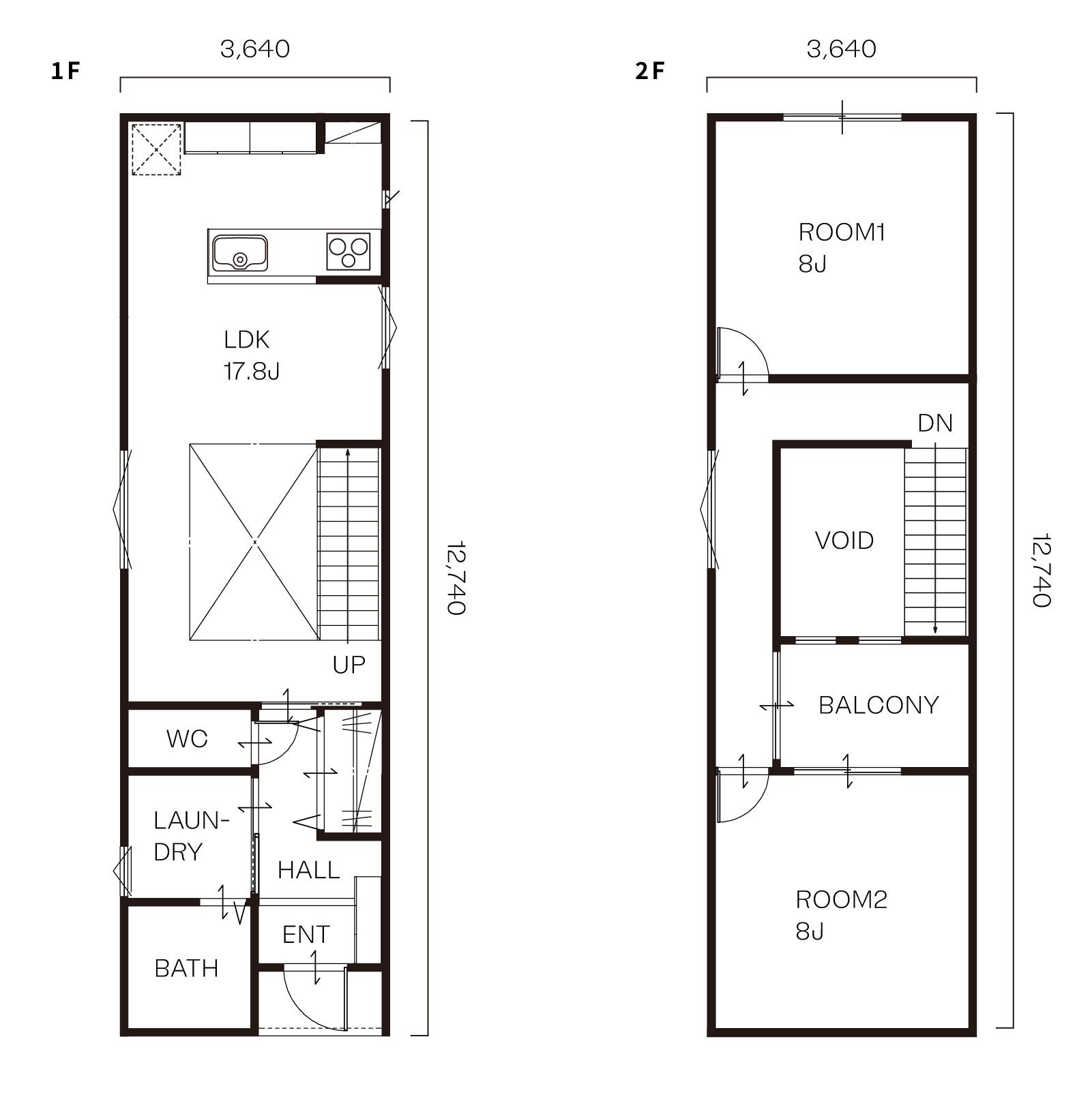 縦につなげたLDKは無駄を省き、必要な分だけコンパクトにまとめた間取り。