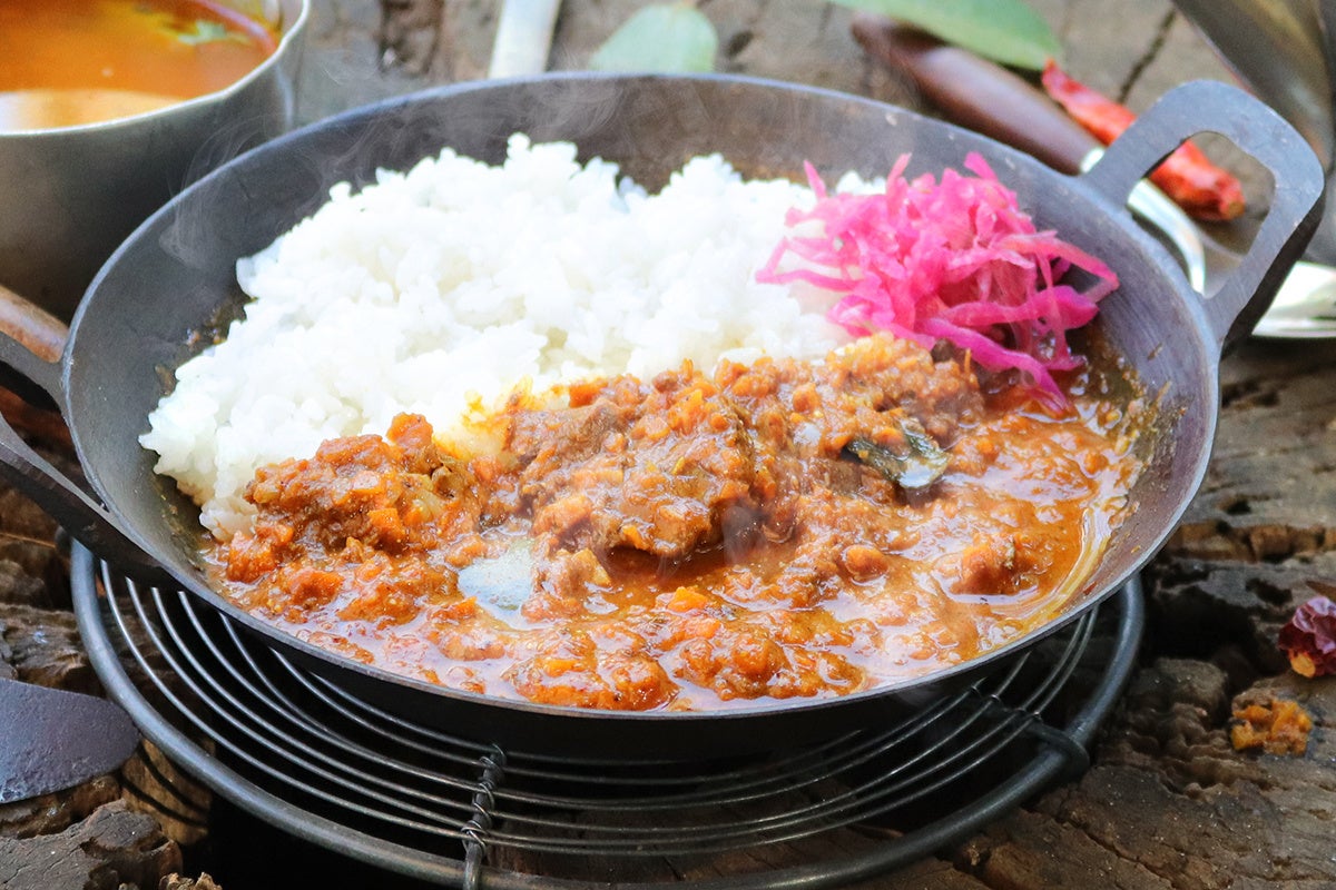 自然の山で狩猟した鹿肉と、鹿の出汁をベースに、やや粗めにミルで挽いた数種のスパイスを豪快に効かせたカレーは、唯一無二の味です。辛さは一般的な辛口程度です。