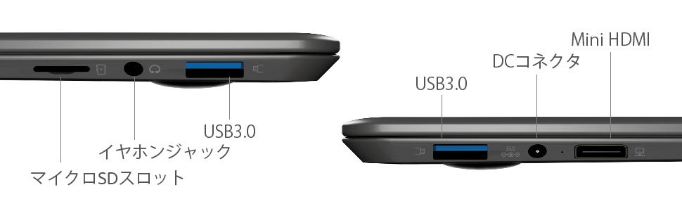 ポート類は下記の通り、USB3.0 Type-Aが2つ、mini HDMI、microSD、3.5mmイヤホンジャックです。