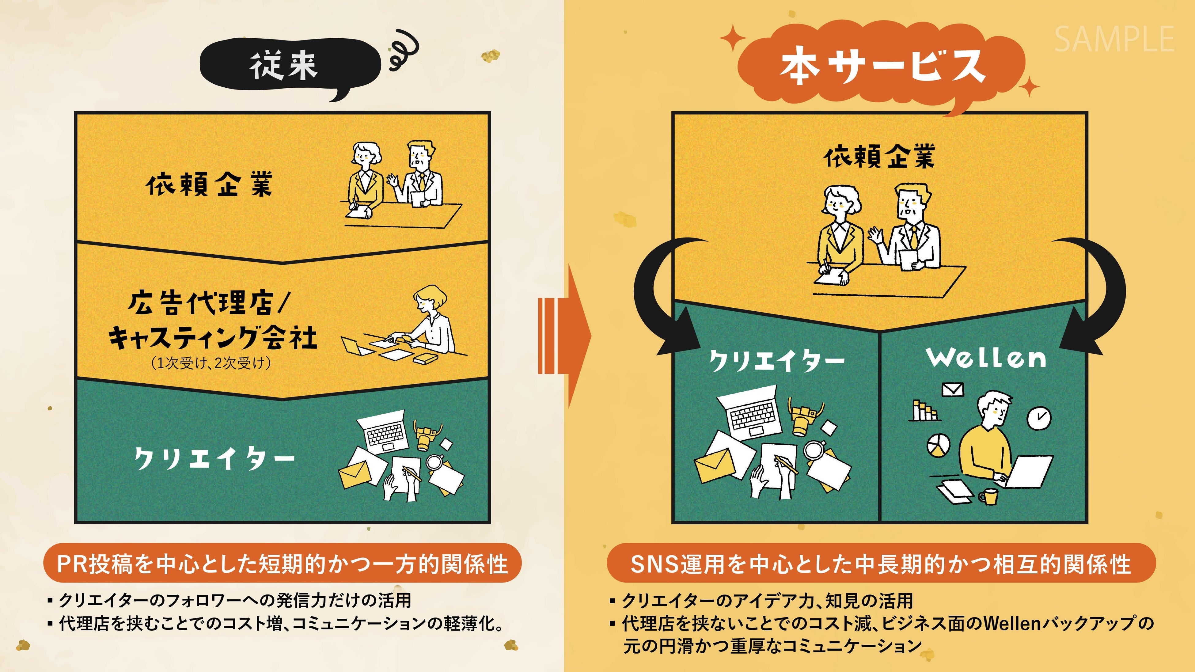 本サービスではそこのサポートにWellenメンバーが入らせていただき、クリエイターを最大限に活かしながら、安心してお任せいただける体制を実現しております。