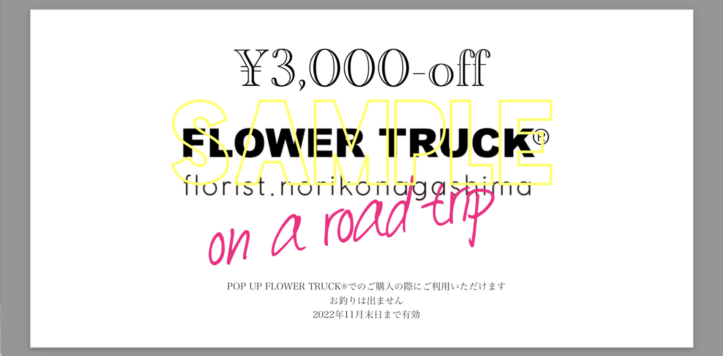 ・POPUPFLOWERTRUCK®で︎のお買い物の際にご利用いただける¥3,000割引クーポン。