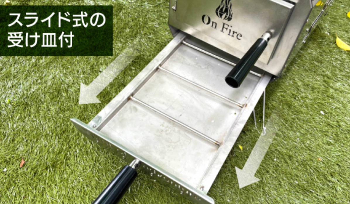 - 灰の撤去が簡単な受け皿と取っ手付き。