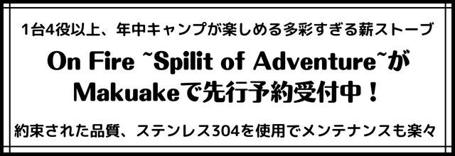 さらに楽しいキャンプ時間を! 1台4役以上、様々なシーンで楽しめる薪ストーブがMakuakeから新登場です『On Fire ~Spilit of Adventure~』