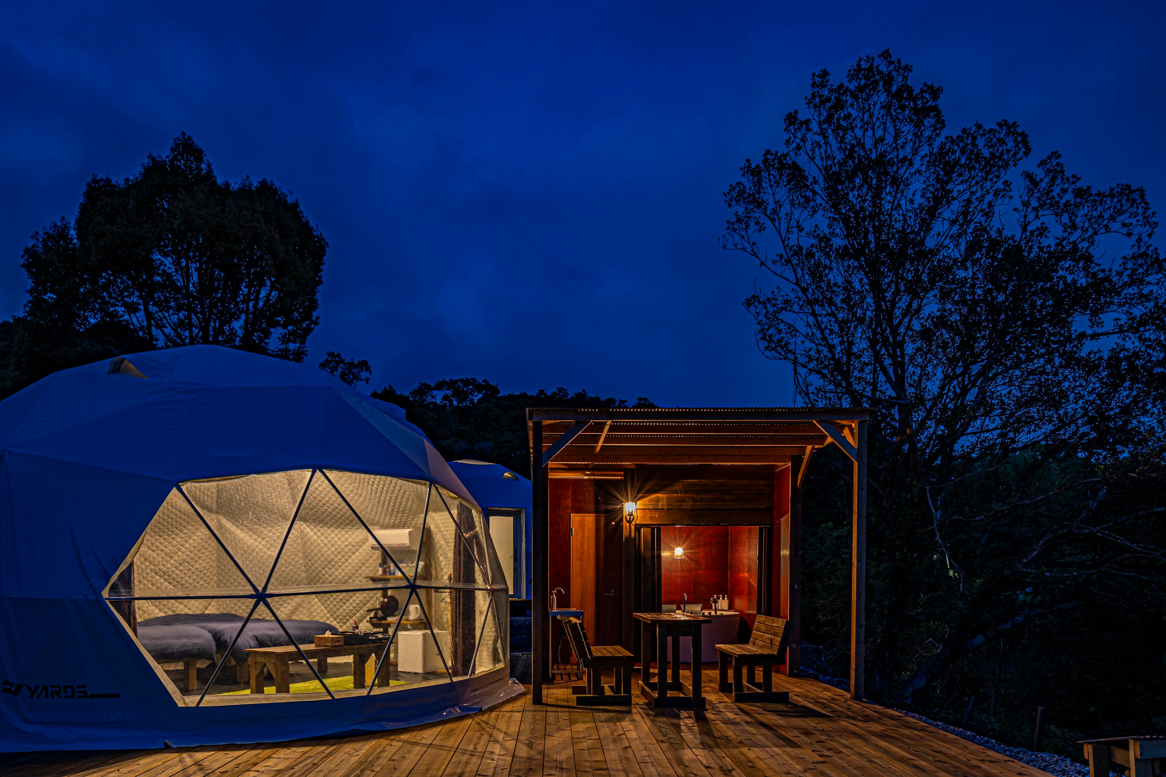 時間に余裕のある方はグランピングやキャンプにて宿泊すると一晩中イルミネーションが楽しめ、さらに満天の星空の下で焚き火をしてゆったりとした時間を過ごせる。