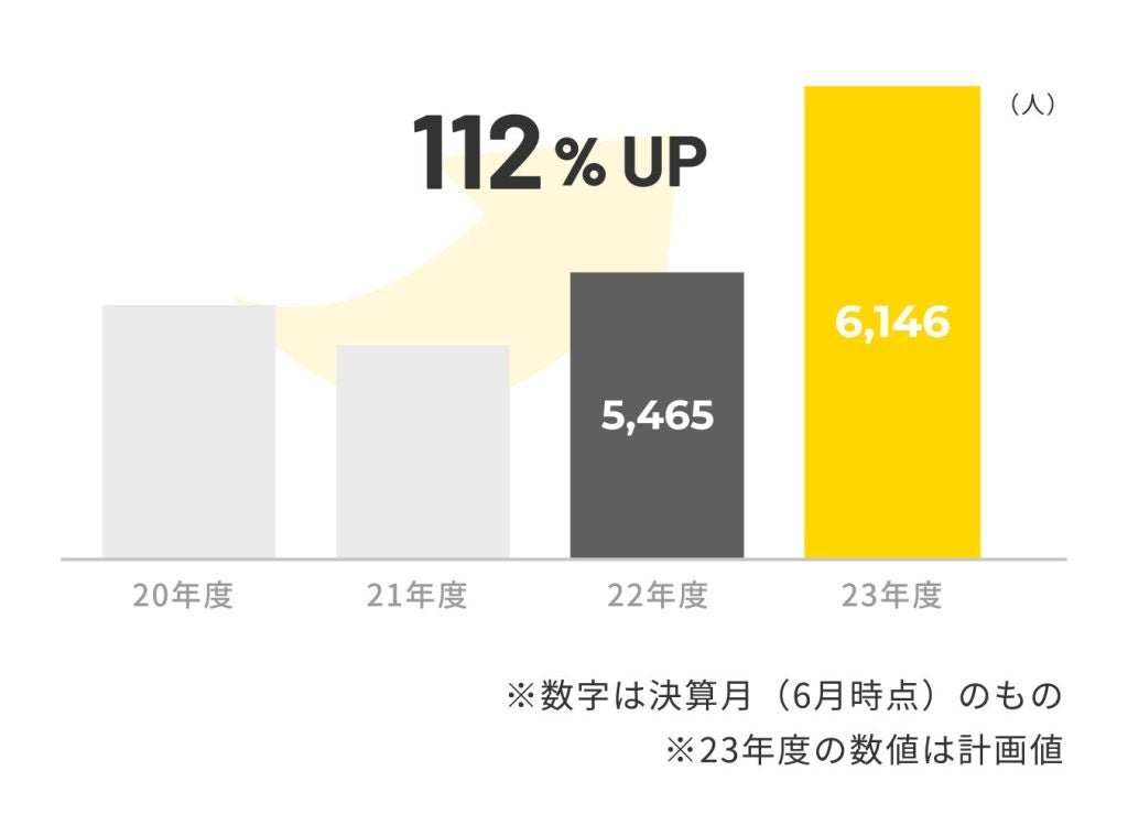 採用拠点拡大と並行して、未経験者と面接する担当者のスキル標準化を行い、「 応募→面接→内定→承諾」プロセスを一元管理できるシステムを導入、採用広告の強化など大量採用が実現できる体制も並行して整えていきました。
