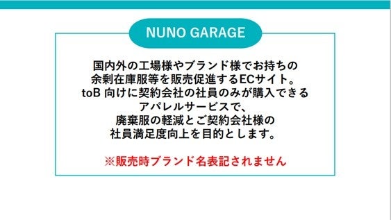 今だけ掲載費0円!出店ブランド募集開始!ブランドの服を販売促進するECサービス「NUNO GARAGE」誕生