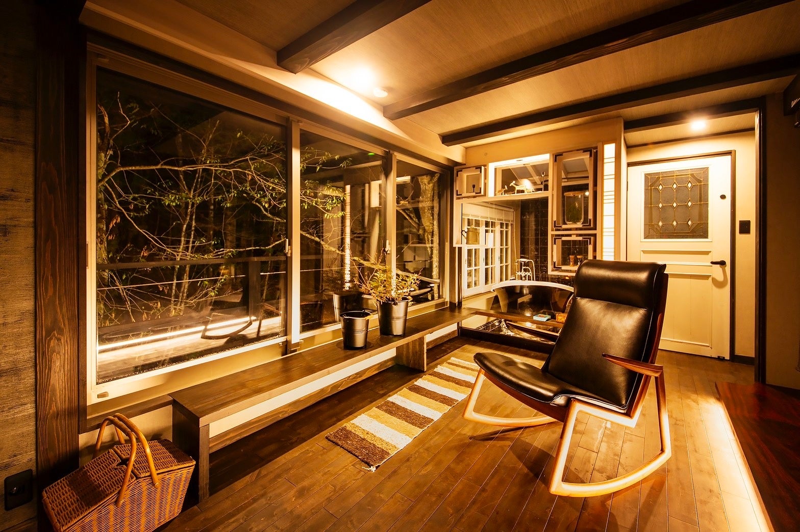 2022年、観光の中心地だけではなく、この町の豊かな自然を存分にお楽しみいただける場所を届けたいという想いから、同市内の標高1,000mの森の中に佇む建築研究所(別荘)をリノベーションしたニ棟目のヴィラ「すみや 落水邸(らくすいてい)」をオープン。