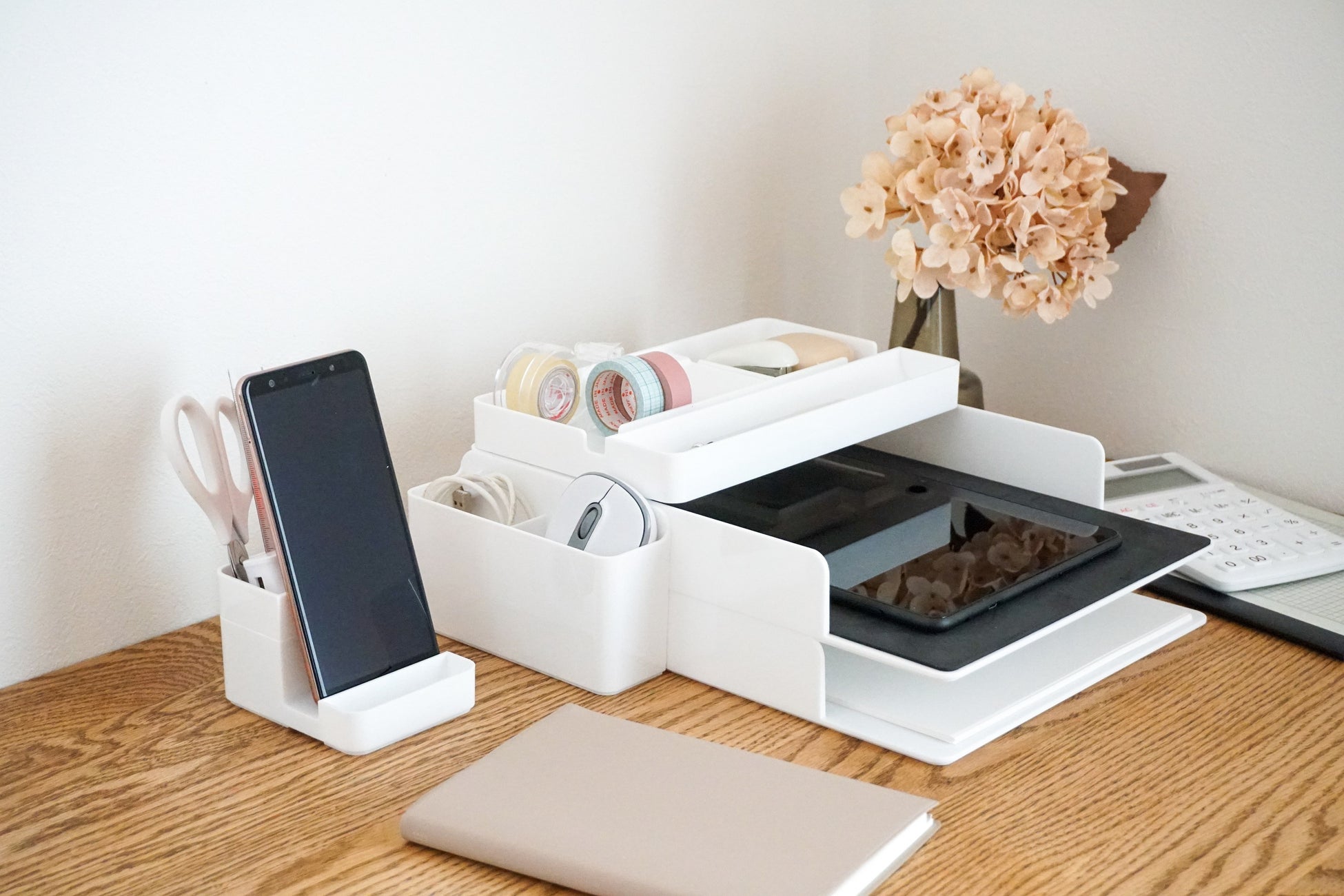 2段目はタブレット収納や書類の収納など
