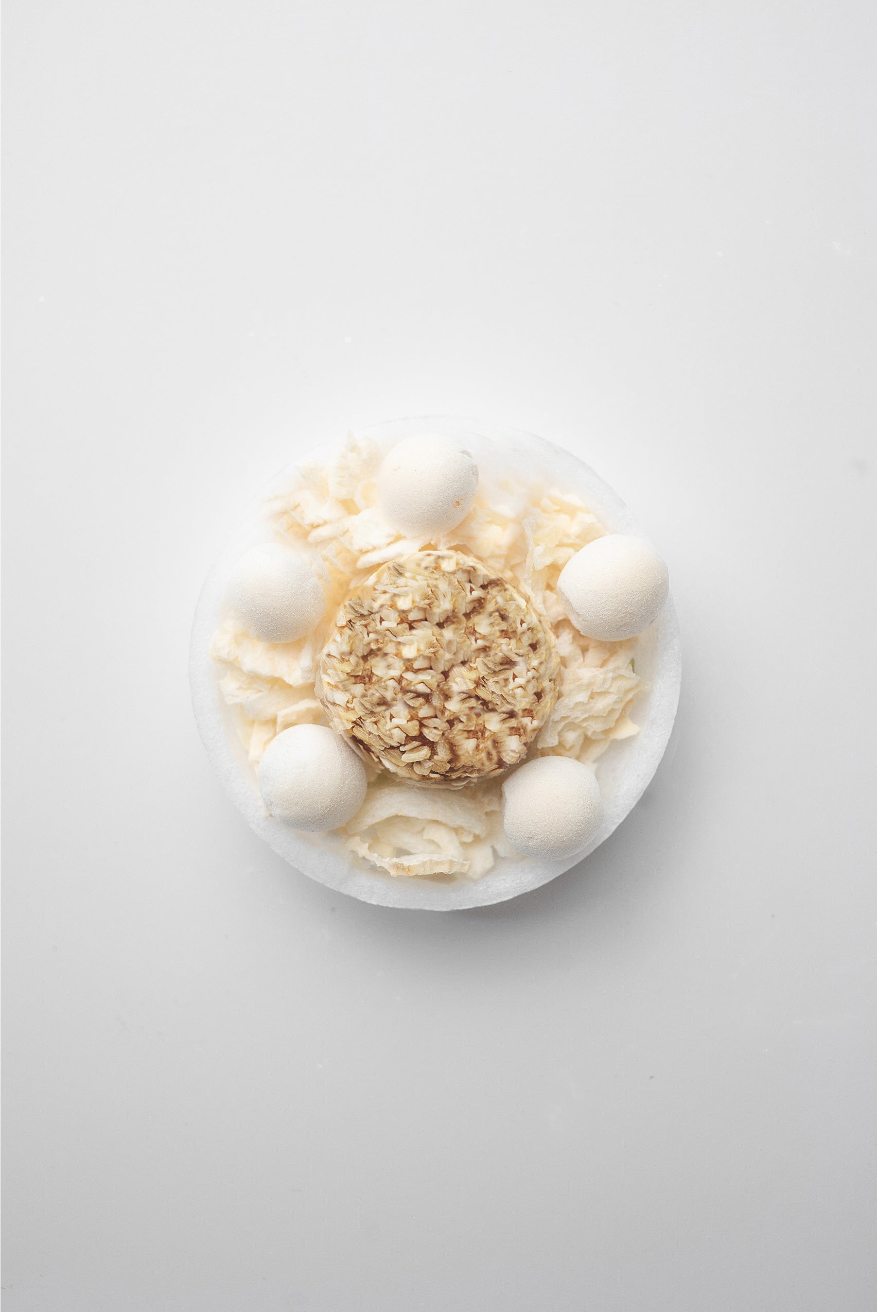 米みそにオニオンチップをトッピング。シャキシャキ食感のレンコン、玉ねぎ、白玉麩とこんもり具材。新しいのになんだか懐かしい味わいの秘訣は、みそと加賀棒茶の出会い。冬の雪景色を彷彿とさせるスペシャルなスープ。