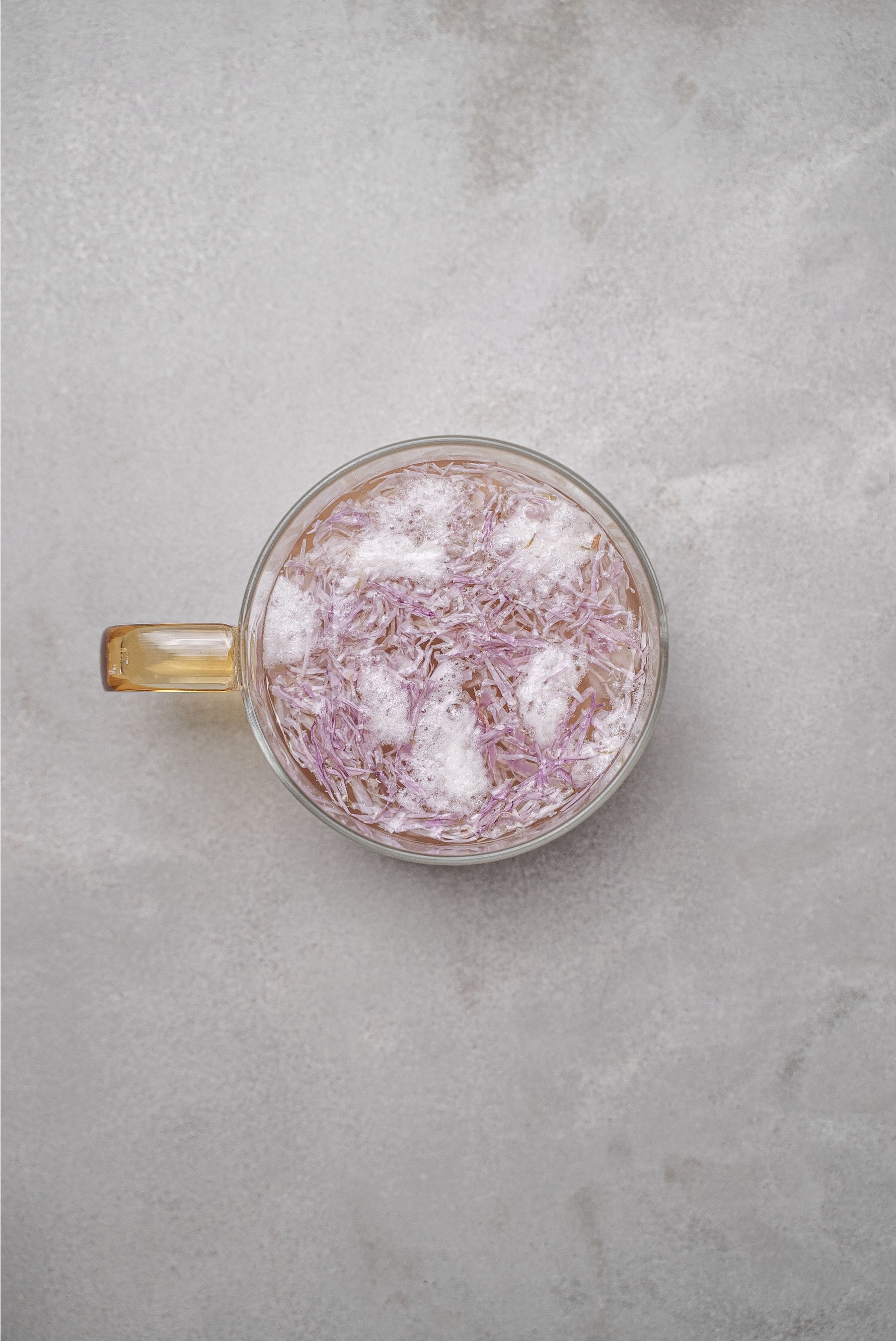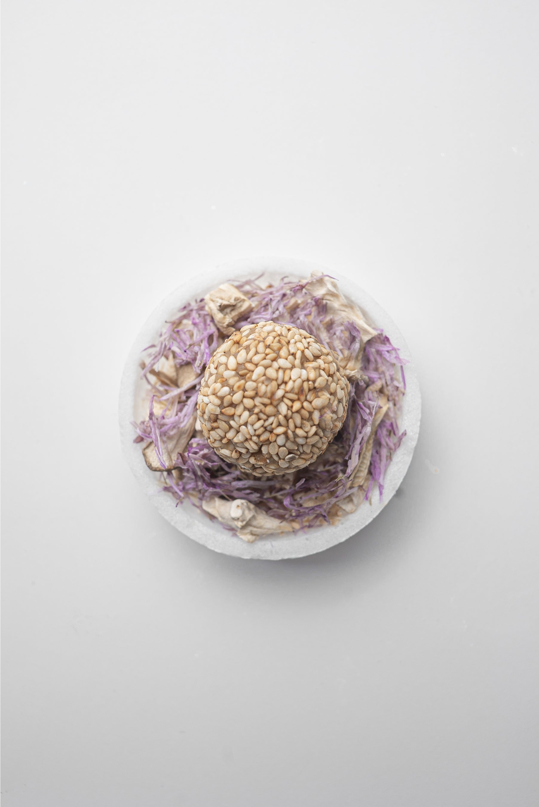 独特の香りと食感が魅力の舞茸とえのきに、秋の花でもある色鮮やかな菊の花びらを添えたスープ。米みそには白ごまをトッピングし、華やかなビジュアルでありながら、食欲をそそる香ばしい食材が組み合わさった秋の花咲く新感覚の一杯。