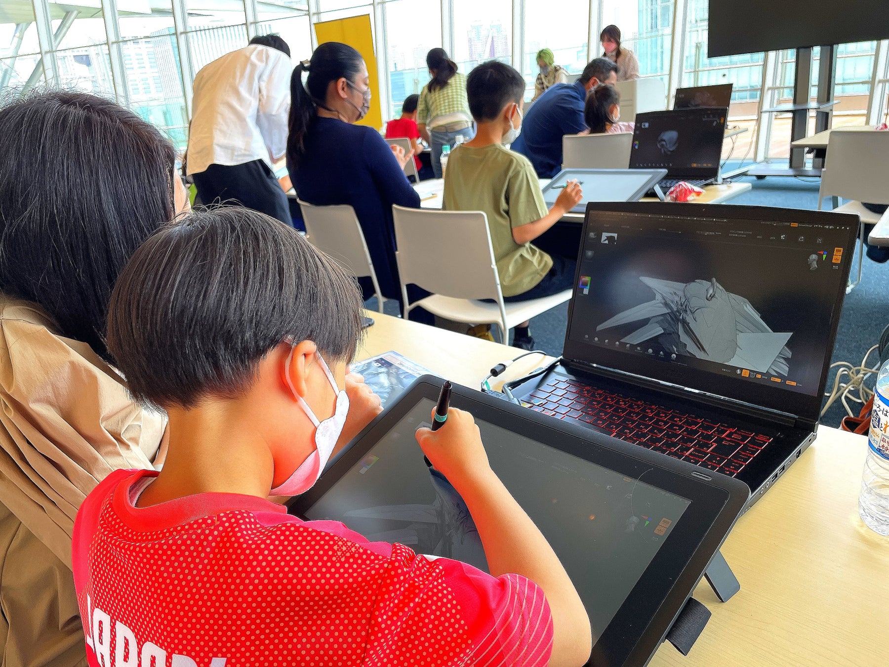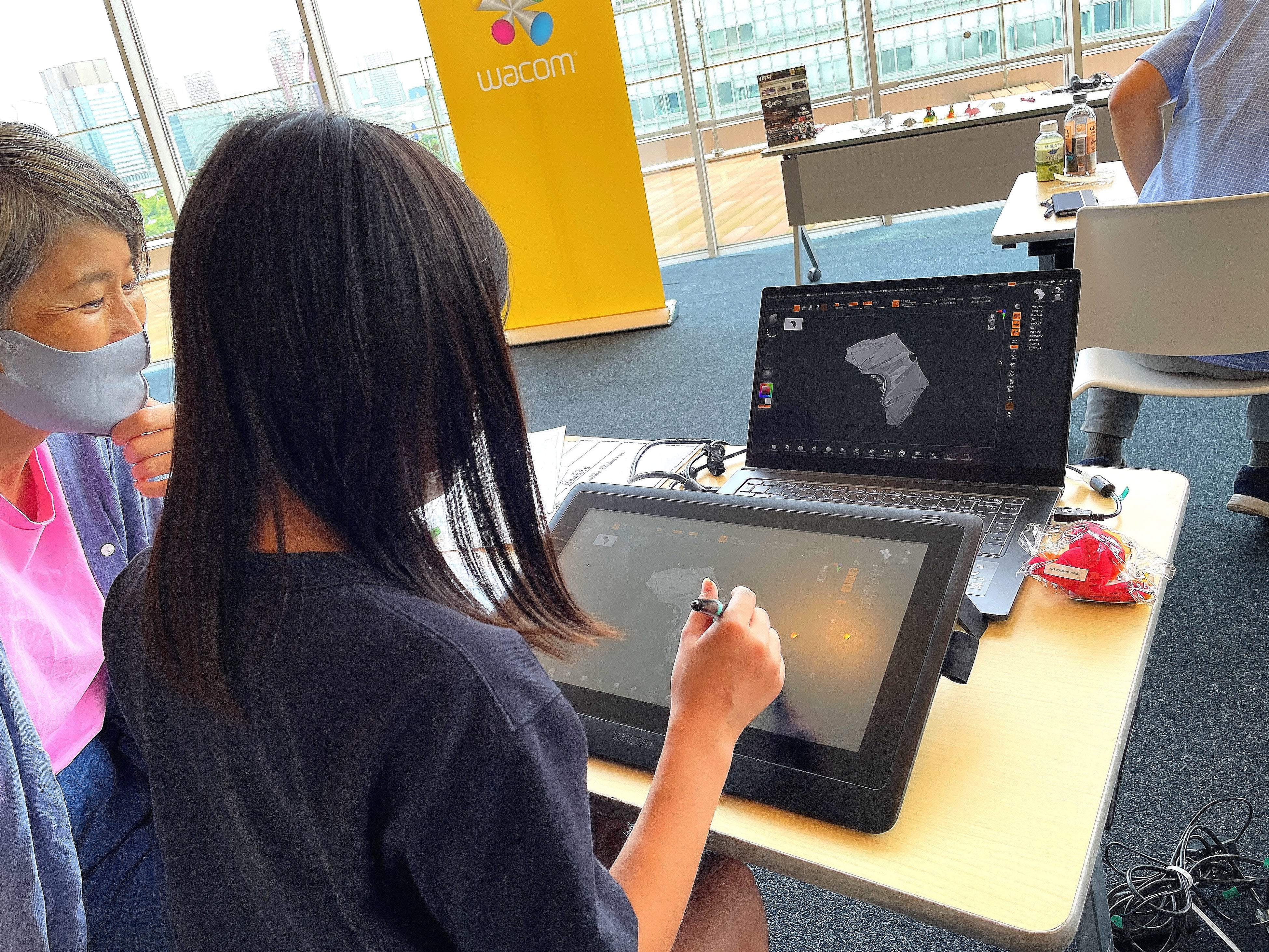 普段あまり触れることがないペンタブレット、今回はワコム社製液晶ペンタブレット「Wacom Cintiq 16」を使用した。液晶モニターに直接書き込みをすることが出来るため、初めてペンタブレットを使用する子供たちでも直感的に使用することができる。また、ZBrushはデジタル粘土と呼ばれる3DCG制作ソフトで、液晶ペンタブレットとも非常に相性が良い。