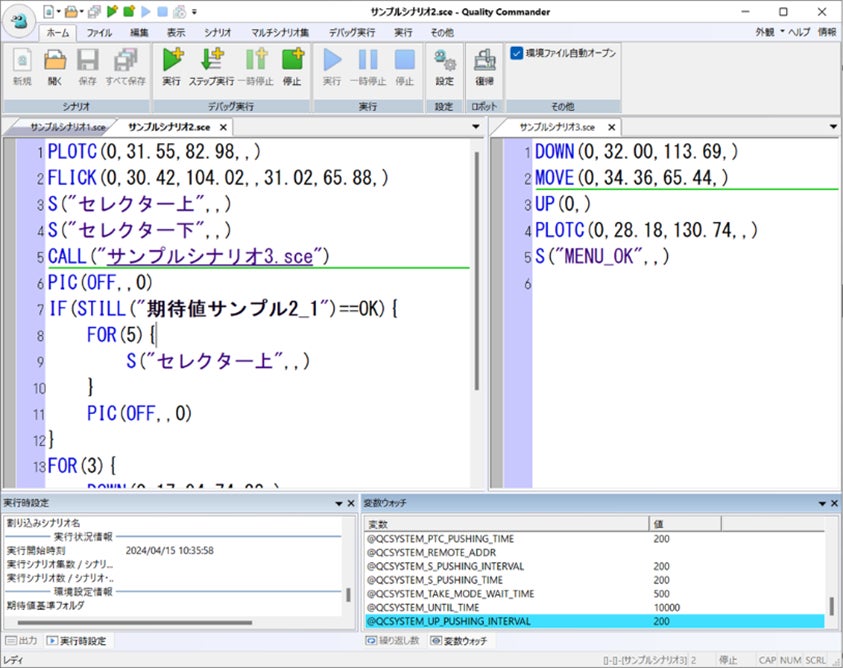 ドッキングウィンドウのレイアウトの自由度が向上し、変数ウォッチや繰り返し数、実行時設定などの出力ウィンドウを並べて表示できるようになりました。