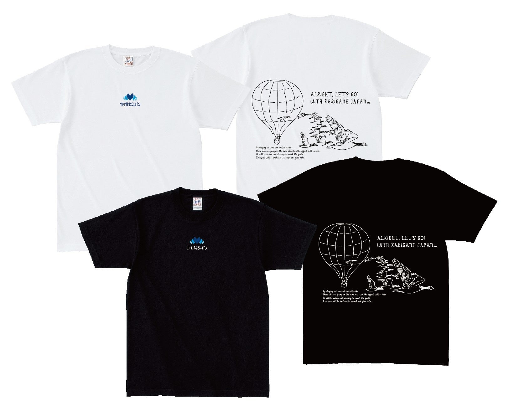 胸にはカリガネジャパンロゴ、背面に雁がねをあしらったデザインと、気球をメインにしたデザインの2種類を作成。要望に応えてキッズサイズの110㎝サイズから用意している。