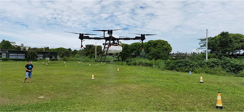 液体の農薬、肥料および除草剤の様々な散布をおこなうために設計されたクアッドコプターです。