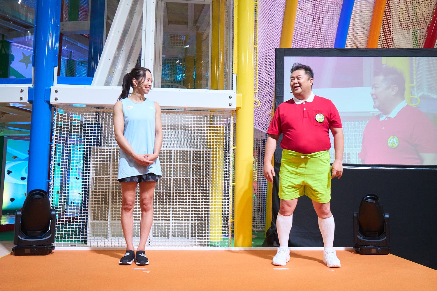 その後、2022年「おやつタウン」CMキャラクターでベビースターラーメンが大好きな小杉竜一さん、 東京五輪 スポーツクライミング 銅メダリストでブタメンキャラクターのブタメン君が大好きな野口 啓代さんが超ドデカイジャングルジムの中から登場。