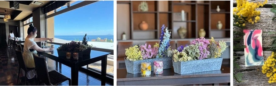 開講内容 : フラワーデザイン、温泉水から作るハンドソープ、ヨガ、フラダンスなど