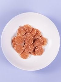 直径は2㎝程の丸形タブレット形式で、天日でしっかりじっくり乾燥しているため表面には白く塩の結晶が「まるで宝石!?」のように付着しています。