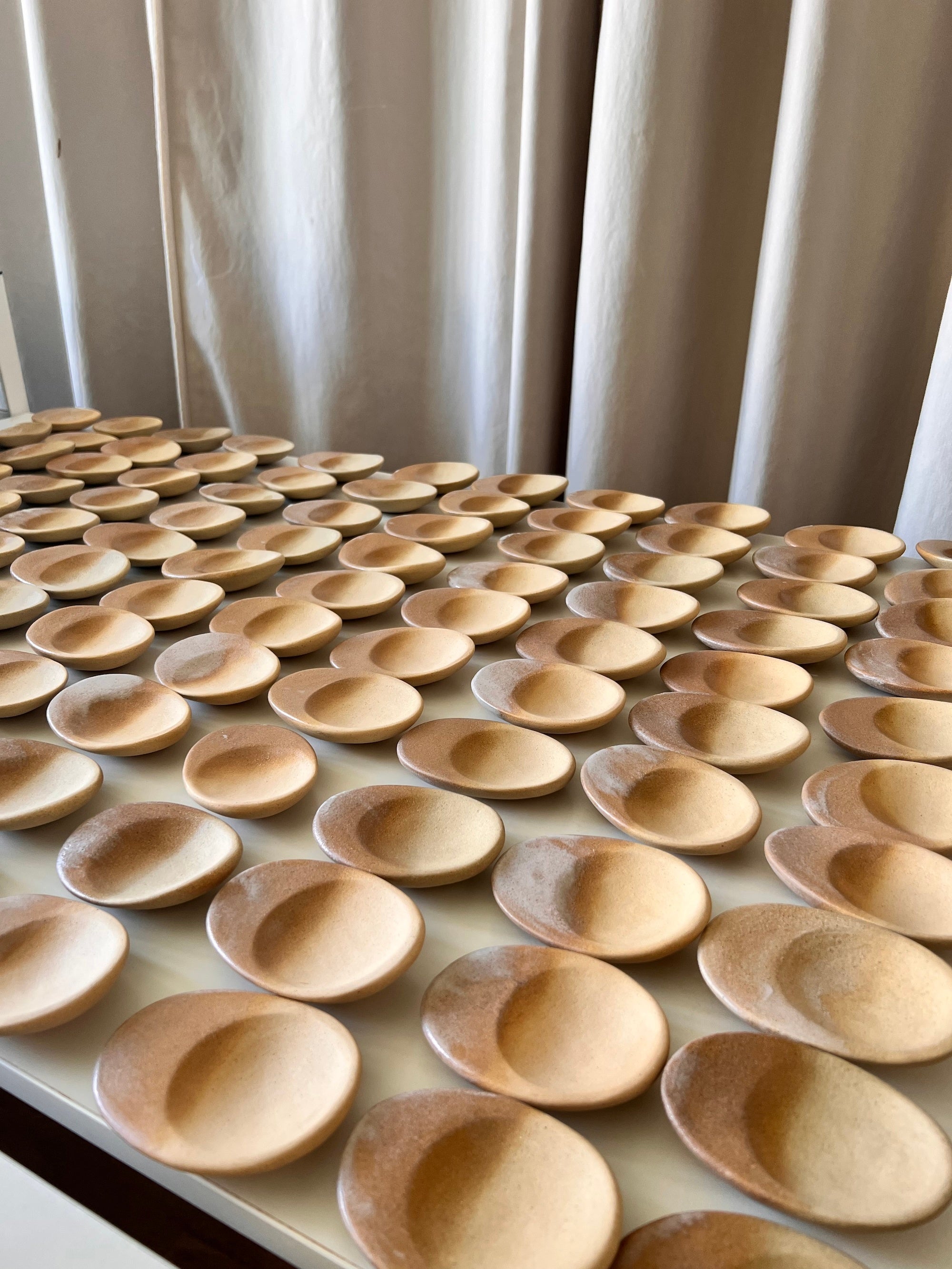 最初のコレクション “Femme”は造形と機能の探求であり、女性の身体を称え、欠点のある美しさを受容する考えを推し進めました。最新作 “Listening to Stone”は、ゆっくりとした時間を過ごし存在していることへの感謝を促しながら、一瞬の静けさと明晰さを感じられるように制作されています。