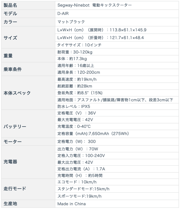 全世界800万以上のライダーに愛用され、21年間電動立ち乗り二輪車の製造開発に携わってきたセグウェイから、道路交通法の改正案に対応した純・日本仕様の最新モデルの電動キックスクーター「D-AIR(ディ・エア)」が、J-MAXに続く第2弾としてMakuakeに再び登場です。