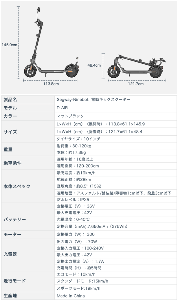 セグウェイ for JAPAN!セグウェイ最新作、フル日本仕様の電動キックスクーター「D-AIR」がMakuakeにて日本初登場