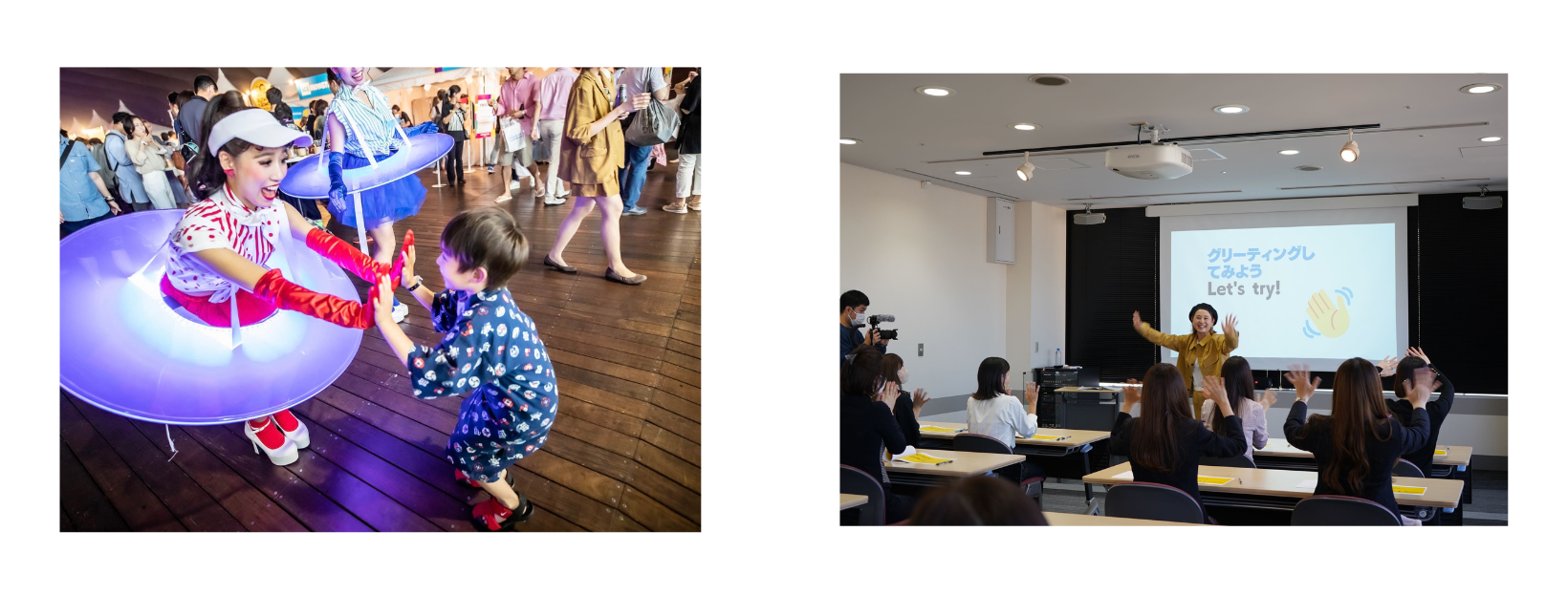 ハローマイビート株式会社では、企業研修や教育研修の場でも アクティベーションを交えたグリーティングメソッドを「楽しく」伝えるため、エンターテイメントの素養を持つ、元テーマパークアクターや大道芸人などのエンターテイナーを募集し、講師として育成しています。また、ライブ、イベント業界や商業施設にパフォーマー派遣と合わせてグリーターを導入し、実証実験を繰り返しながらハートフルなグリーターを日本に普及させるためのワークショップや派遣体制を構築していきます。