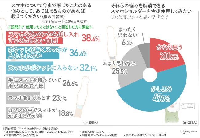カバンからの出し入れを始め、スマホに関する何かしらのお悩みを感じている方は多いことがわかります。