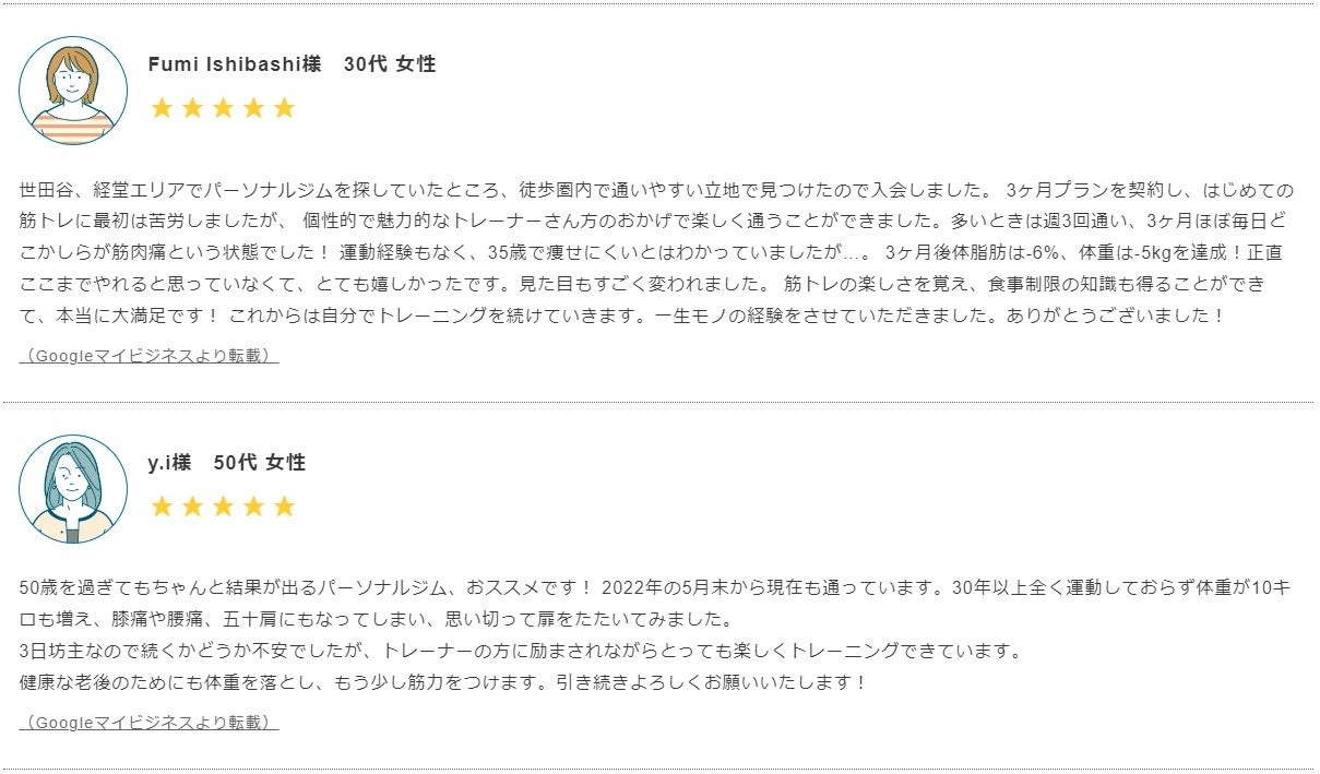 1号店は大盛況をいただき経堂エリアでは口コミNo.1の信頼と実績のパーソナルトレーニングジムです。(2023年7月調べ)